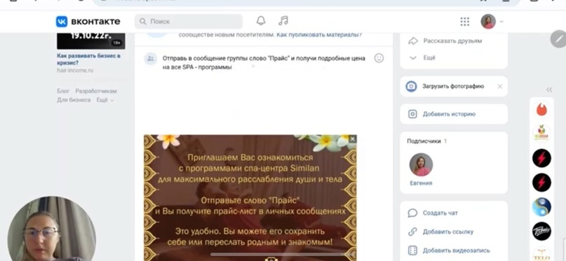 Настройка сообщества Вконтакте для СПА-салона в Милославском
