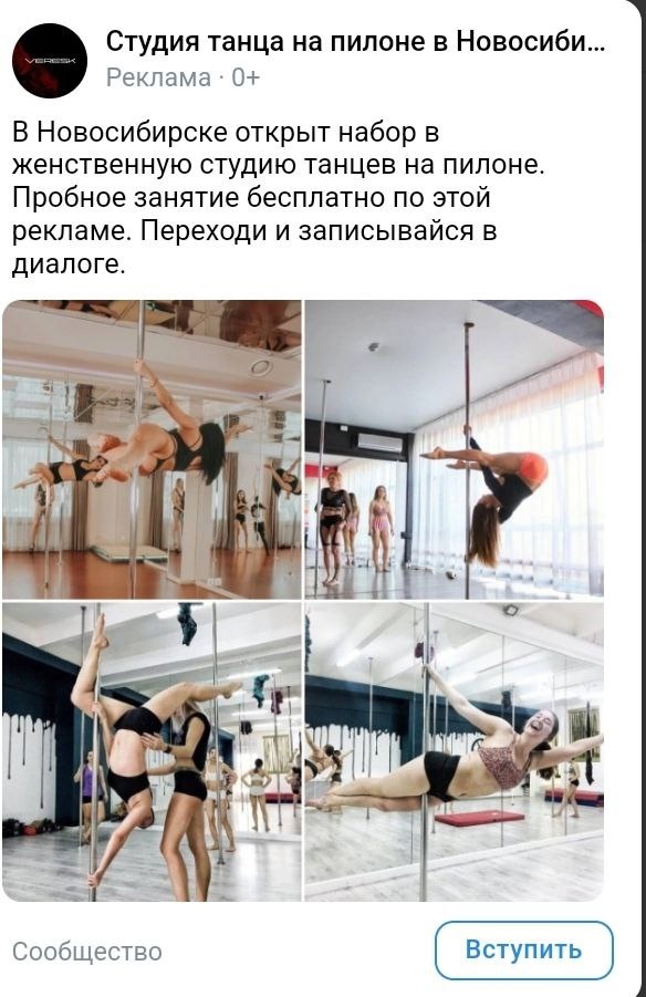Делюсь новым кейсом по продвижению школы танцев на пилоне в Милославском